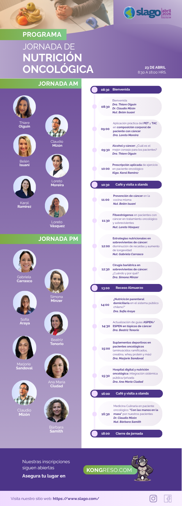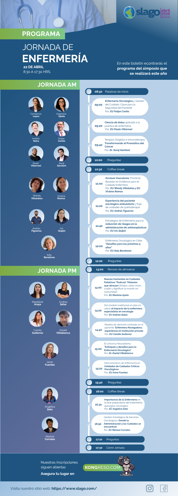 Un espacio inmersivo, que te conecta con la práctica real y los desafíos actuales. Integral, porque reúne a todas las especialidades que impactan en el cuidado del paciente oncológico. E inteligente, al integrar conocimiento, innovación y toma de decisiones centradas en la persona.